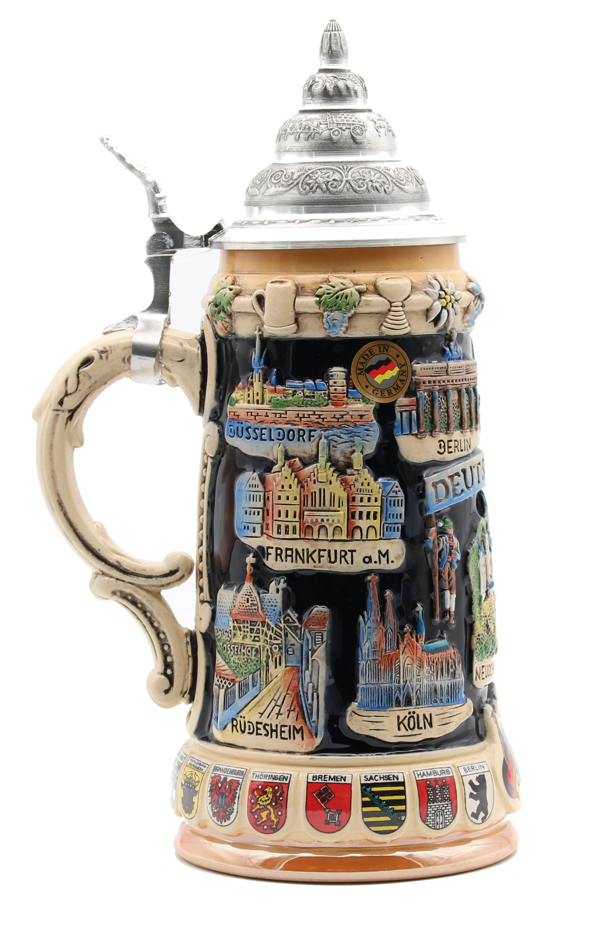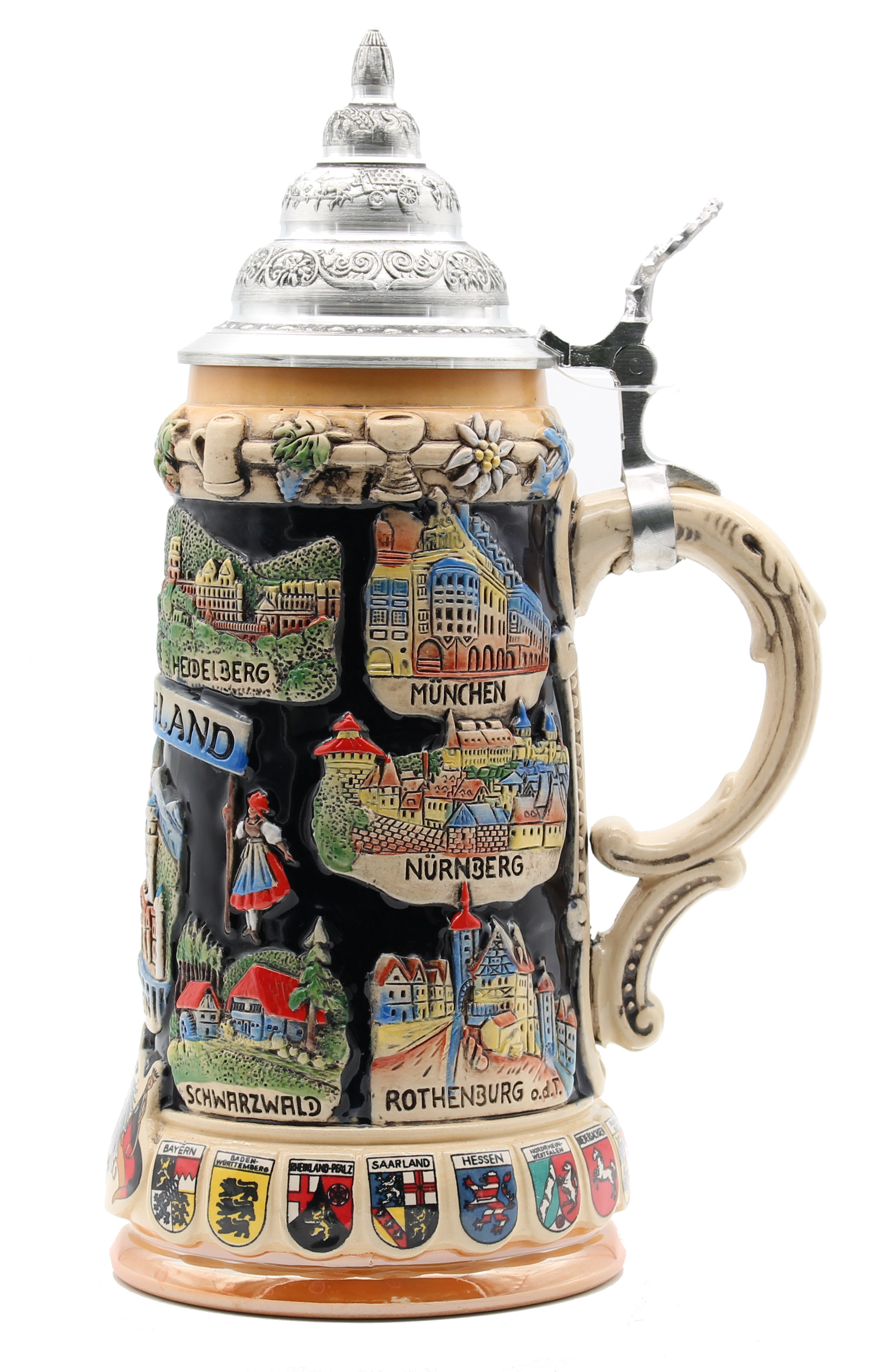 Handbemalter Panorama Bierkrug 0,75 Liter mit Zinndeckel